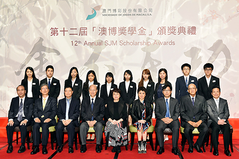 澳門博彩股份有限公司(「澳博」)昨天於新葡京宴會廳舉行第十二屆「澳博獎學金」頒獎典禮,向十名表現優異的員工子女頒發獎學金,同時向三十二名往屆尚在就讀的得獎學生續發新學年的獎學金。出席頒獎禮的包括澳門特別行政區政府教育暨青年局梁勵局長、中央人民政府駐澳門特別行政區文化教育部洪波處長、澳門理工學院李向玉院長、澳門中華教育會何少金會長,以及來自教育界及社團的嘉賓;他們與澳博董事局主席蘇樹輝、澳博常務董事兼行政總監梁安琪、澳博董事官樂怡大律師、澳博各部門主管及「澳博員工子女獎學金同學會」成員,歡聚一堂,一同見證得獎學生的喜悅,場面溫馨熱鬧。