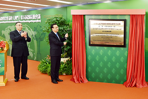 將興建在南灣湖C區的C15及C16地段上的中國與葡語國家商貿合作服務平台綜合體昨日正式啟動,並由國務院總理李克強主禮揭牌.行政長官崔世安在儀式前發言稱,為加快實施中國與葡語國家商貿合作服務平台所構建的戰略目標,澳門特別行政區政府遂計劃建立該綜合體。