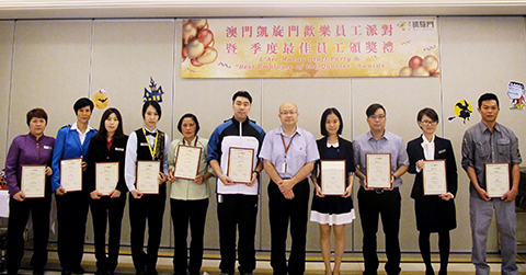 澳門凱旋門一直重視給予員工肯定和鼓勵,為嘉許表現傑出的員工,於前日在酒店員工餐廳舉行「二零一六年第三季最佳員工頒獎典禮」。澳門凱旋門一眾管理層和各部門員工均出席活動,共同祝賀得獎員工,場面歡樂溫馨。