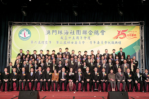 澳門珠海社團聯合總會慶祝成立十五周年暨第六屆理監事就職、第二屆婦委會及青委會理監事就職典禮,昨晚假漁人碼頭會展中心宴會廳舉行;珠海市委常委兼統戰部長陳洪輝勉勵該會加強團結,促進珠澳多方合作。活動筵開一百二十多席,共超過一千四百人參與。
