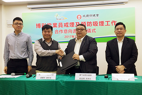 博彩業職工之家與戒煙保健會昨日簽署「博彩從業員戒煙及預防吸煙工作」合作意向書,雙方將於未來三年共同推動更多博彩從業員使用戒煙服務,加強控煙及推廣戒煙工作。