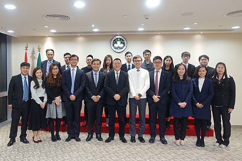 澳門中華新青年協會新一屆會員大會及理監事會負責人與澳門中華學生聯合總會負責人日前一同拜訪特區政府經濟財政司司長梁維特。會上三方就兩團體的會務工作,以及本澳青年事務進行意見交流。新青協會長羅奕龍感謝司長梁維特一直對新青協及學聯的支持,並經常與青年分享本澳經濟發展情況,希望日後相互之間能有更多溝通及交流的機會。