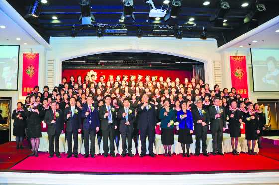 “慶祝‘三 八’國際婦女節酒會暨第卅五屆理監事就職禮”昨日下午四時假萬豪軒酒家舉行,行政長官崔世安、中聯辦副主任陳斯喜、全國婦聯副主席崔郁、外交部駐澳特派員公署副特派員蔡思平、行政法務司司長陳海帆、經濟財政司司長梁維特、保安司司長黃少澤、社會文化司司長譚俊榮、運輸工務司司長羅立文、立法會副主席林香生,在婦聯會長賀定一、理事長林婉妹、監事長吳秀瓊陪同下主禮及祝酒。