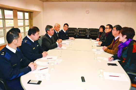 街總一行接着拜訪關閘海關站。海關副關長冼桓球表示,海關歲晩配合其他部門的人流管制措施,在治安管理增加人手。與民署合作派人在各口岸檢疫年花、年桔等,呼籲居民勿帶過大盆栽過關。因應禽流感,近期加緊抽查,提升人員自身保護。