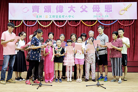 澳門工會聯合總會屬下的望廈老人中心日前假工聯職業技術中學禮堂舉行「齊頌偉大父母恩」,藉著慶祝父母親節以鼓勵子女孝順父母、增進親子關係,當日出席長者及家屬逾三百四十位。活動內容包括有長者表演、魔術表演、親子才藝表演、親子競技同樂日活動花絮分享及團體遊體等。