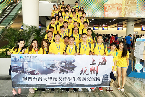 澳門台灣大學校友會為加強與在台就讀澳門學生的交流與聯繫,本年繼續舉辦「第二屆澳門台灣大學校友會學生參訪交流團」,一行四十多人昨晨離澳前赴上海,展開為期五天的參訪交流活動,是次活動由澳門中聯辦台灣事務部處長級助理趙宇為顧問,澳門台灣大學校友會會長蔡文政為團長,副會長王貴豪、理事長楊日星為副團長。理事林綉霞、何玉嬋、馮玉嬋、台灣港澳同學會會長麥家俊及台大學生會會長何祐全擔任組長,本活動獲得澳門基金會贊助。