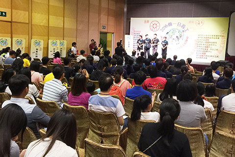 二零一六「做一日義工」由澳門義務青年會主辦,活動昨日中午十二時假旅遊塔四樓會議廳舉行分享會,中聯辦社工部處長級助理林丹紅、社工局家庭及社區務廳代廳長李焯輝、教青局青年廳廳長袁凱清、民署市民事務辦公室公民教育資訊處職務協調員錢偉玉等出席。