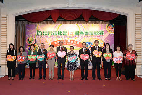 澳門扶康會於澳門扶康會於八月二十七日假澳門萬豪軒酒家舉辦十三周年會慶晚宴,筵開五十六席,中央人民政府駐澳門特別行政區聯絡辦公室社會工作部代表林丹紅、澳門特別行政區政府行政會委員梁慶庭先生、旅遊局文綺華局長、房屋局山禮度局長、衛生局鄭成業代局長、社會工作局社會互助廳蔡兆源廳長、澳門婦女聯合總會賀定一會長、勞工事務局就業廳孟瑞怡廳長、教育暨青年局教育心理輔導暨特殊教育中心周佩玲主任、民政總署市民事務辦公室高佩珊部長、澳門大學公共關係處處長謝嘉儀以及各界代表出席支持。