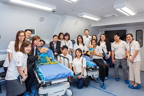 共六十位金沙中國關懷大使周日及周一在奧比斯成員的導賞下,參觀了到臨停泊於澳門國際機場全球獨一無二的奧比斯眼科飛機醫院。