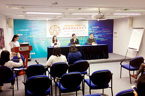 主辦機構昨日在澳門創新科技中心舉行發佈會。出席嘉賓包括澳指南營運總監葉偉雄、澳門創新科技中心業務拓展主管鄭明俊。
