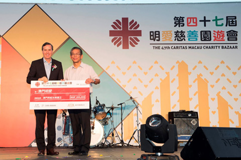 在上周六舉行的明愛慈善園遊會開幕式上,拉斯維加斯金沙集團及金沙中國環球首席市場官賀德偉把澳門幣二十萬元捐款的支票交予澳門明愛總幹事潘志明,以支持該非牟利機構的營運開支。自二零零四年起,金沙中國透過慈善晚宴及園遊會等活動向澳門明愛捐贈了合共超過澳門幣三百六十萬元善款,支持該團體於本地社區推行及發展各項社區服務。