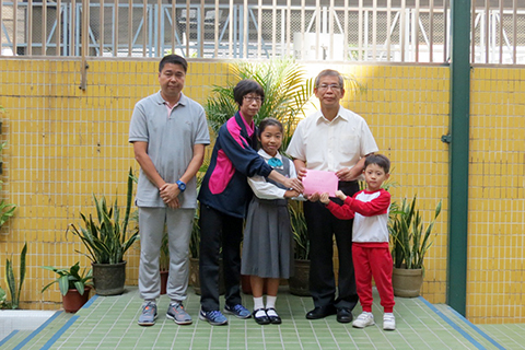 善款捐贈儀式於本月十五日在校內舉行,由該校校長助理黎美倫主任、高錦棠主任、幼稚園和小學學生代表,將善款交予澳門明愛總幹事潘志明。潘志明更向齊集操場的學生表示謝意,讚揚同學們具愛心,更勉勵大家盡好學生本份積極學習,汲取豐富知識,將來服務社群。