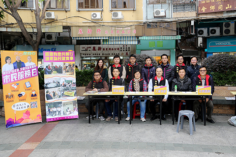 上周末下午,陳明金、施家倫、宋碧琪議員服務團隊在三盞燈圓形地舉行「市民服務日」活動,活動現場設義診服務、個案協助、法律諮詢、大廈事務諮詢等服務攤位,逾百位市民陸續親臨參與。期間,服務團隊與市民親切交談,了解民生民情,並記錄下市民反饋的意見,其中包括「疊假」問題,一次性餐盒不環保、建立古董和工藝品市場、部份食肆吸煙影響他人、申請公屋、處理大廈業權等。