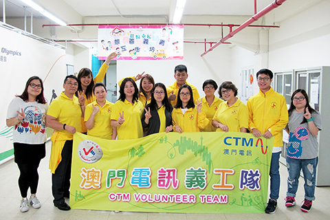 當日下午,澳門電訊義工隊成員前往澳門特殊奧運會合時中心,與該會學員一同製作手工藝品。過程中,在導師詳盡的講解下,義工隊成員發揮藝術創意,將愛心注入了一件件獨一無二的手工藝品中。整個活動在輕鬆愉快的氣氛下進行。