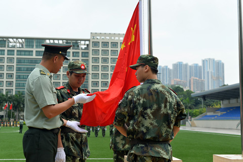 為提高本澳學生愛國情操,學習國旗知識和升旗儀式,教青局與駐澳部隊合辦「國旗下的說話──二零一七年澳門中學生國旗手訓練營」。昨日在駐澳部隊氹仔軍營開幕。來自二十間學校的一百五十六名中學生受訓,掌握升國旗儀式的程序步驟、動作要領和注意事項。