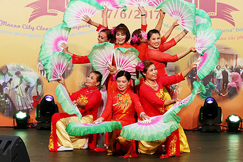 為協助不同國籍人士融入社群,民政總署早前聯同多個本澳外籍社團舉行澳門城市清潔運動之「城市清潔繽紛夜」文娛表演晚會,透過輕鬆有趣的表演,促進相關人士的相互交流、溝通及合作。