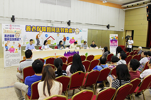 由民眾建澳聯盟主辦、澳門時報協辦的主題為「養老保障如何落實到實處」的第卅期民眾論壇昨日下午在民眾建澳聯盟綜合服務中心舉行,各有關方面人士近百人出席,其中包括擔任主講的社工局長者服務處處長羅淑霞、澳門立法議員宋碧琪、明愛護養服務主任鄭月嬋,立法議閆宋碧琪,澳門特區長者事務委員會委員姚繼光、民眾建澳聯盟理事長李良汪等。