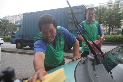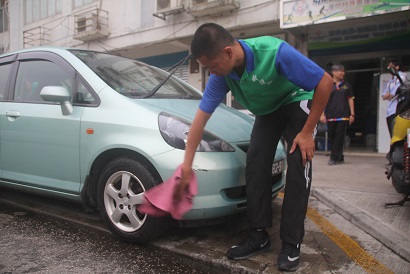 澳門首間智障復康服務社會企業「毅進社有限公司」自2002年起,開辦殘疾人士洗車服務。在「毅進社」工作了逾11年的智障人士阿權,已經是洗車團隊裡的「大阿哥」,平日擔當助理督導員角色,負責帶著其他資歷較淺的學員,到全澳多個停車場清潔汽車。當問到一天可以清洗多少輛汽車時,一直表現得害羞的阿權頓時自豪地向記者表示,「至少30架私家車! 」。他更指洗車工作沒有難度,「最重要係落多啲水! 扭乾啲條毛巾! 」。