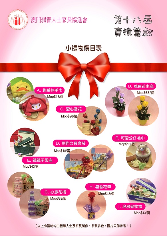母親節表愛心 - 第十八屆賣旗籌款小禮物價目表