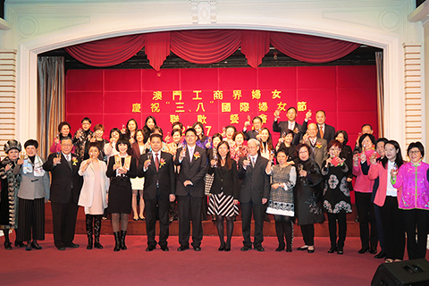 澳門工商界婦女慶祝「三.八」國際婦女節聯歡餐會昨晚假萬豪軒舉行。大會表示,澳門婦女積極參與社會建設、維護家庭和諧,在經濟社會發展中發揮了重要作用。相信在全社會的支持及婦女的努力下,澳門婦女事業必將不斷向前邁進。