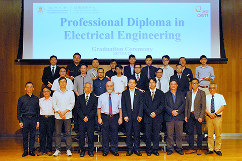 由澳電與澳大合辦的為期三年之「電機工程專業文憑課程」,日前在澳門大學舉行畢業典禮。由澳門大學副校長(研究)馬許願、澳電執行委員會首席顧問岳宗斌、澳門大學持續進修中心主任梁成安共同主持儀式。