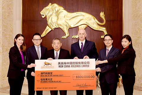 為響應澳門同善堂一年一度的沿門勸捐籌款活動,美高梅向其捐贈了澳門幣五十萬元,以支持澳門同善堂的各項慈善公益服務。美高梅一直以推動社會企業責任為己任,至今已是連續第九年支持其本地社會公益及慈善事務,合共捐贈澳門幣三百一十萬元。