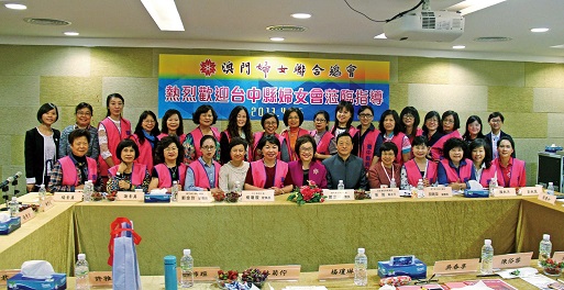 台中縣婦女會理事長楊瓊瓔日前率團到訪澳門婦聯綜合服務大樓,受到澳門婦聯總會會長賀定一等負責人熱情接待,雙方就台澳婦女發展合作親切交流。